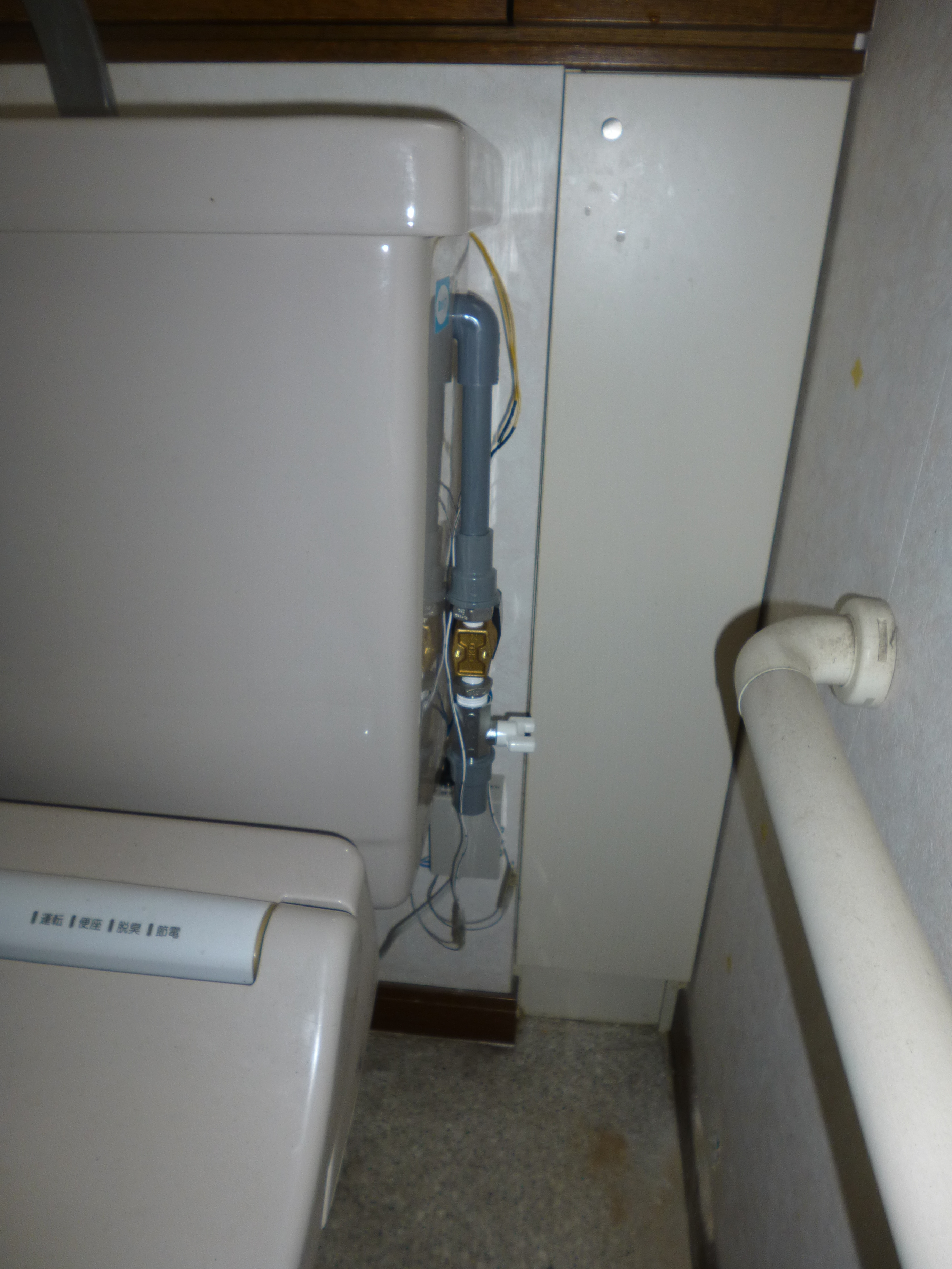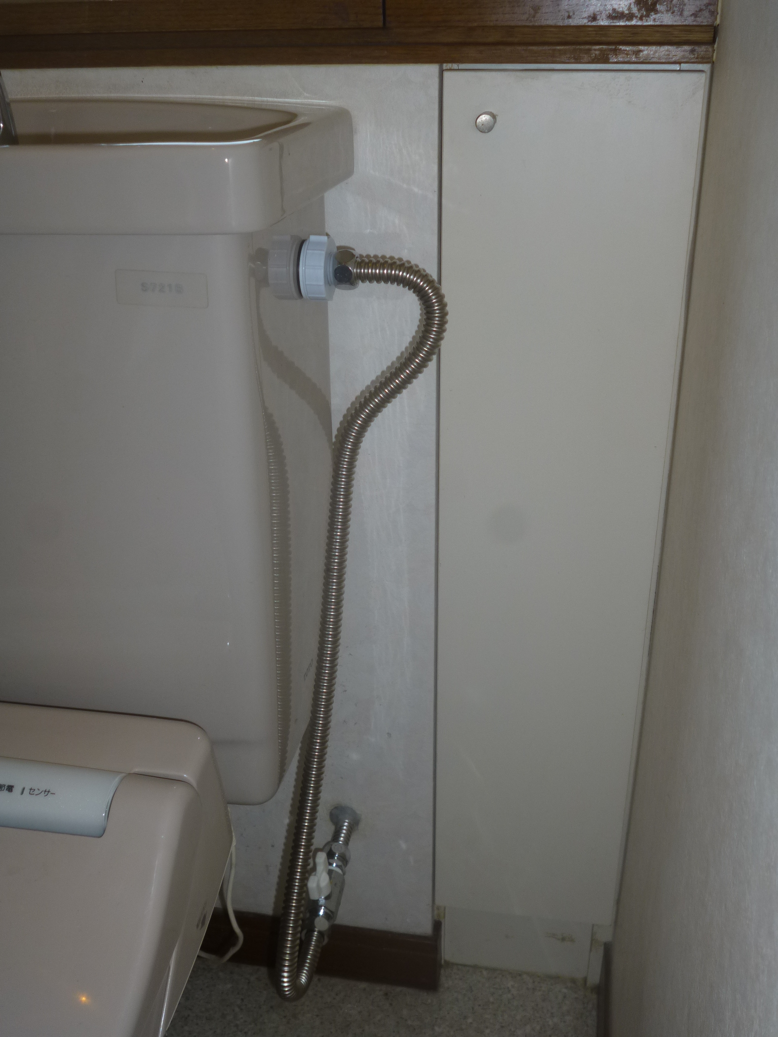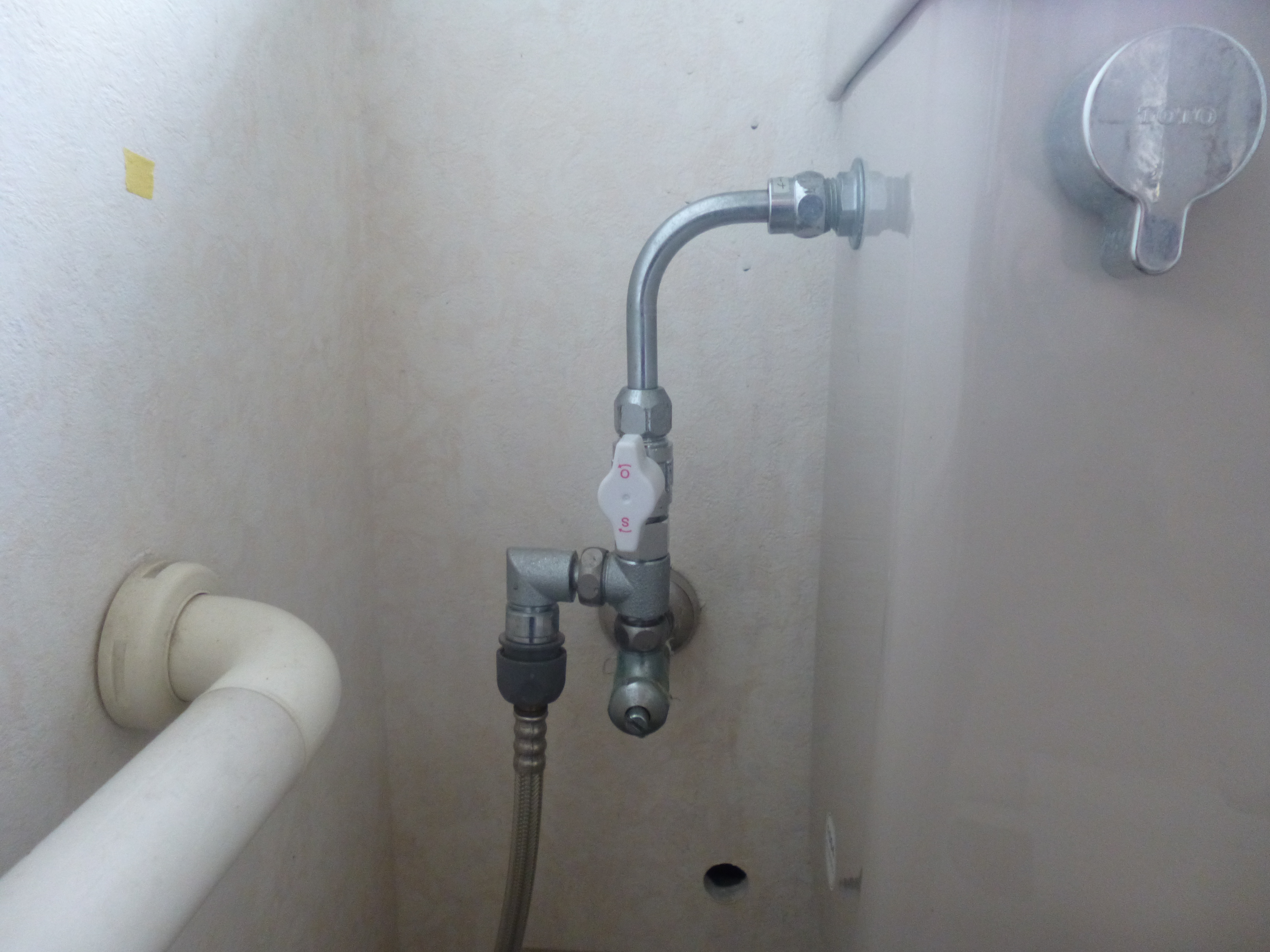 また、ウォシュレットは水道水を使用するため、バルブの直前で分岐し、ウォシュレット用の配管に接続しています。