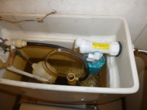ロータンク内の水位が上がってくると、「カチ・カチ・カチーン!」と3度連続音がし、給水が止まります。若干ロータンクの水位が揺れてOFF・ON・OFFとなっていました。