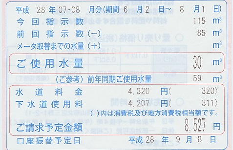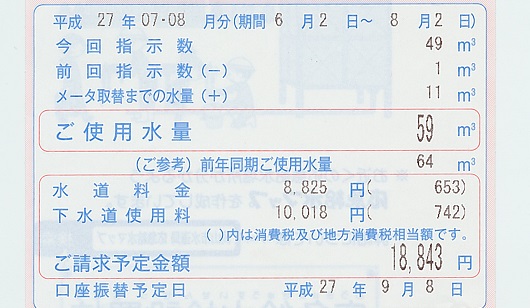 水道料金は使用量が増えると、だんだん1立方mあたりの料金が高くなる仕組みなので、なるべく少ない方が良いのです。