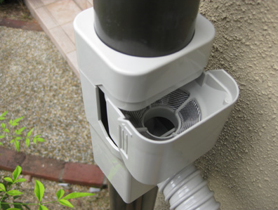 これは優れものです。ゴミを取り除くフィルターもついていますし、縦樋の内壁を伝わってきた水を効率よく集めてくれます。