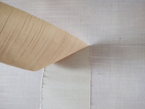 ふすま紙には「和紙(鳥の子というらしい)」と「糸入り」があり、一般的に強度のある糸入りが多く使われているらしい。