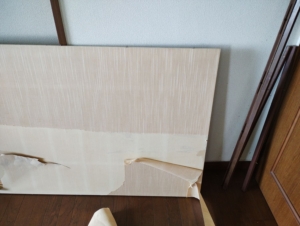 その上に襖を伏せて、張り付いた襖紙とともに起こします。