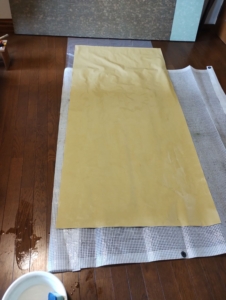 襖紙を伸ばすため数分待ちます。(見た目はわからないくらい)