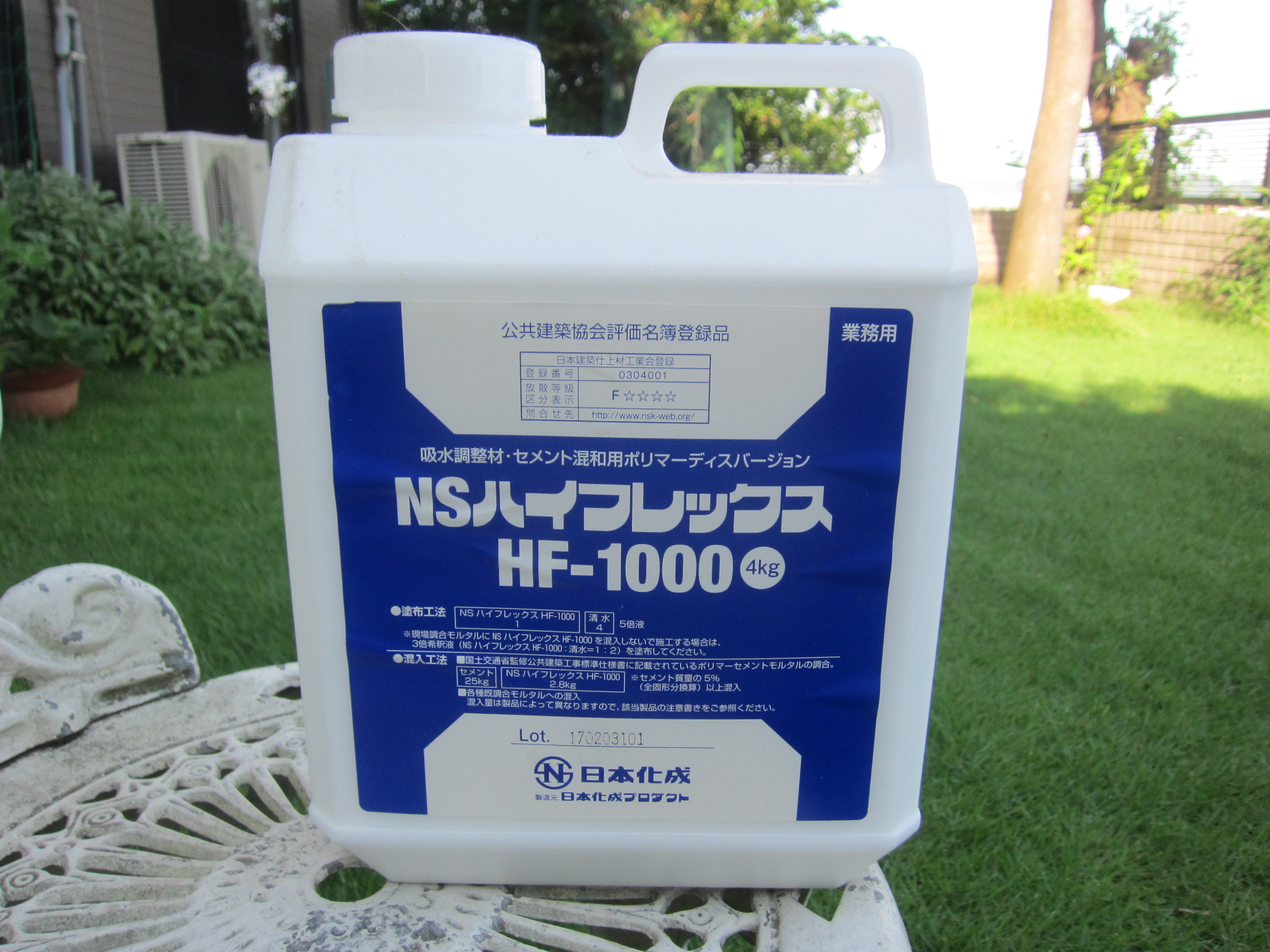 これを水で3~5倍に薄めて、モルタルを塗る直前に刷毛でささっと塗っておきます。