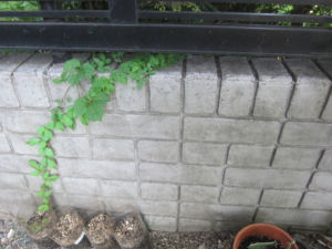 1997年、家を建てたときに作った高さ60cmの低い塀は、コンクリートブロック製です。