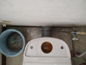 どうせ後で切断することになるから、便器につながったまま配管を切りました。