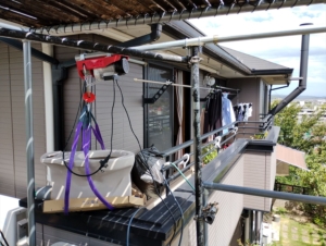 まずは手始めに古い便器を取り外し、ベランダから1階へ降ろしてみることにしました。