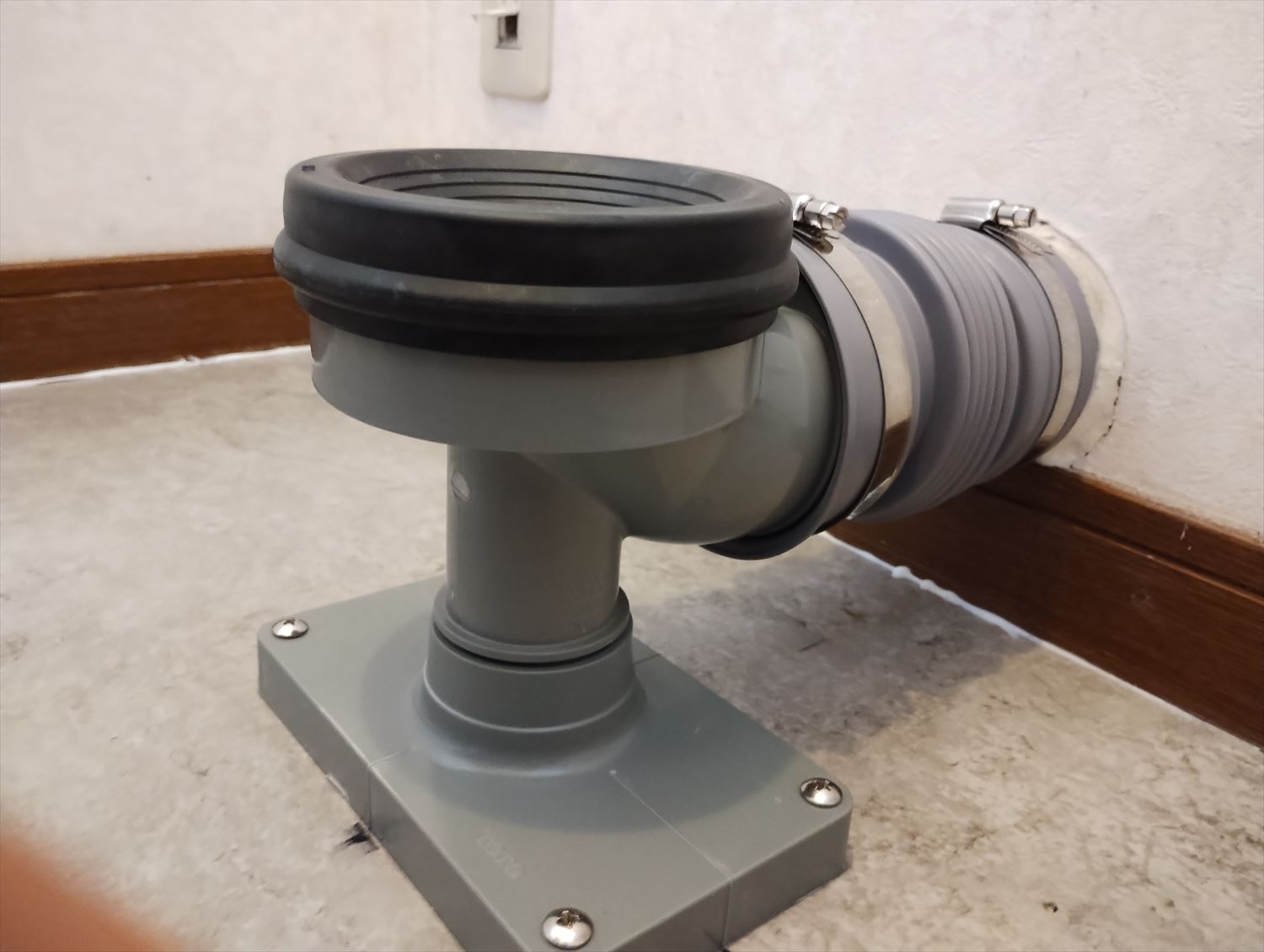 これを取り付けるため既存の排水管を壁から4cm残して切り取る必要があるため、便器を外すときに先に切っておいたのです。