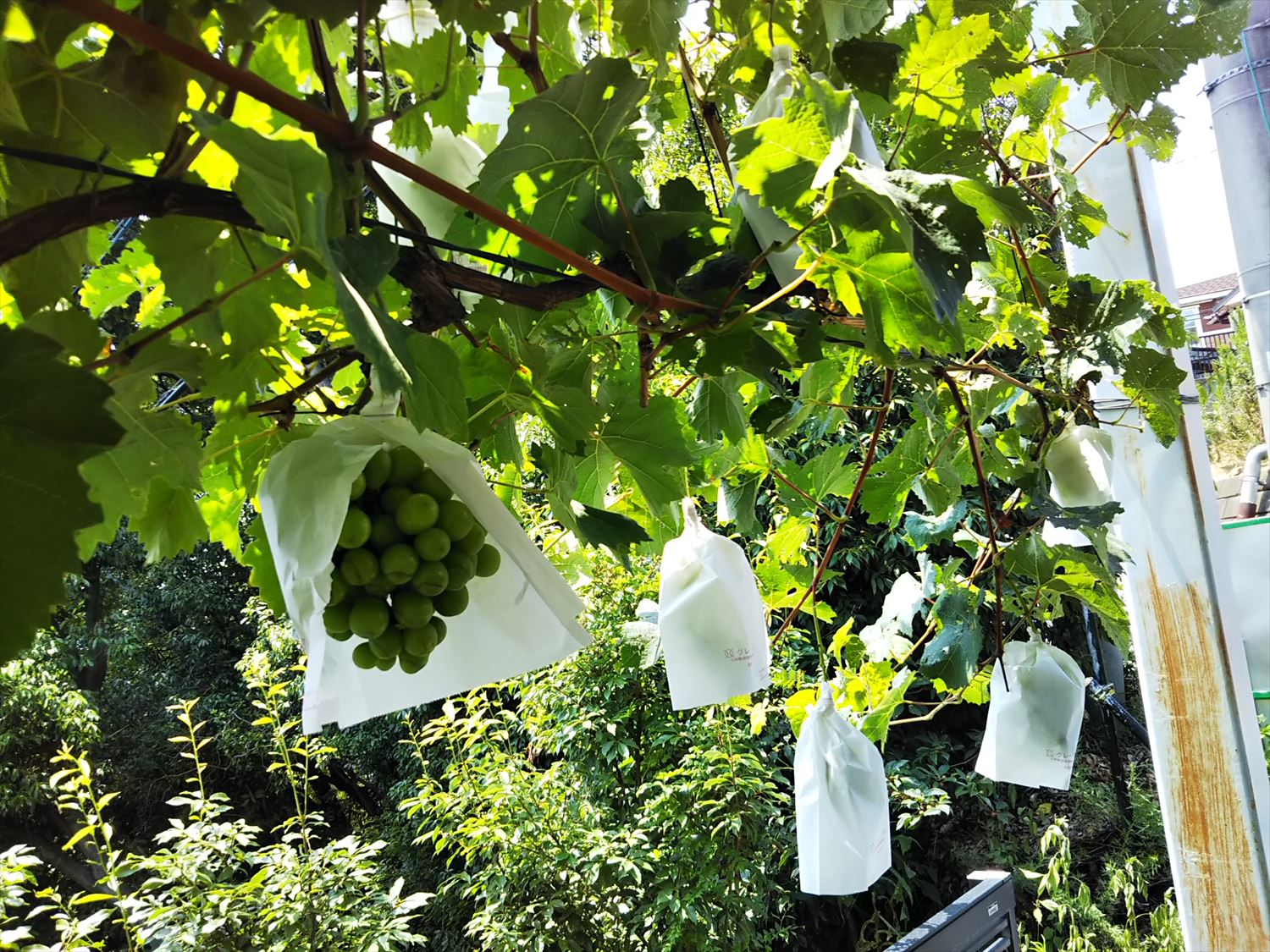 昨年から40房ほどのシャインマスカットが収穫できるようになりました。