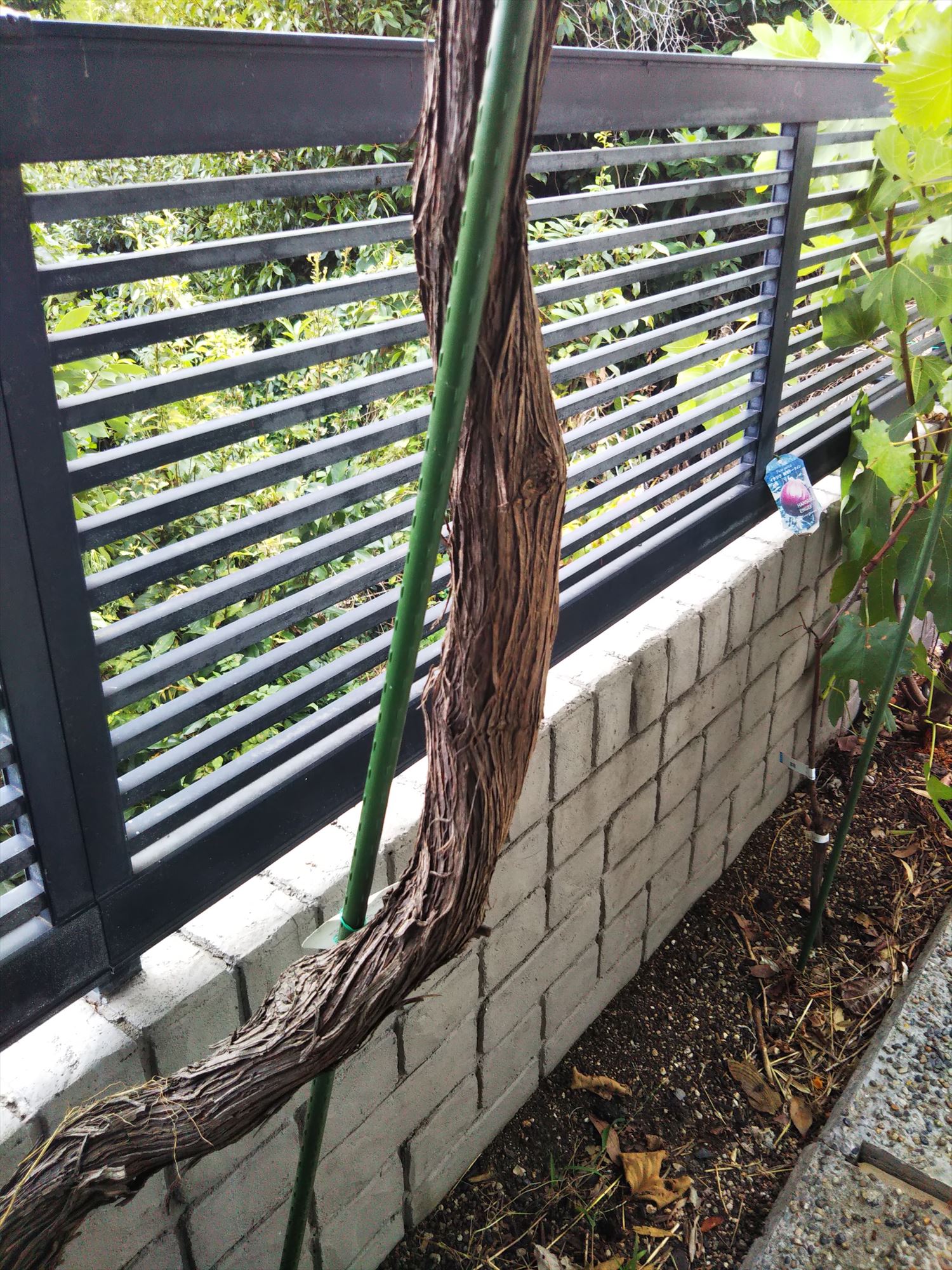 そこで思いついたのが、ガレージ脇の僅かなスペースに縦方向に伸びる葡萄棚を作ること。