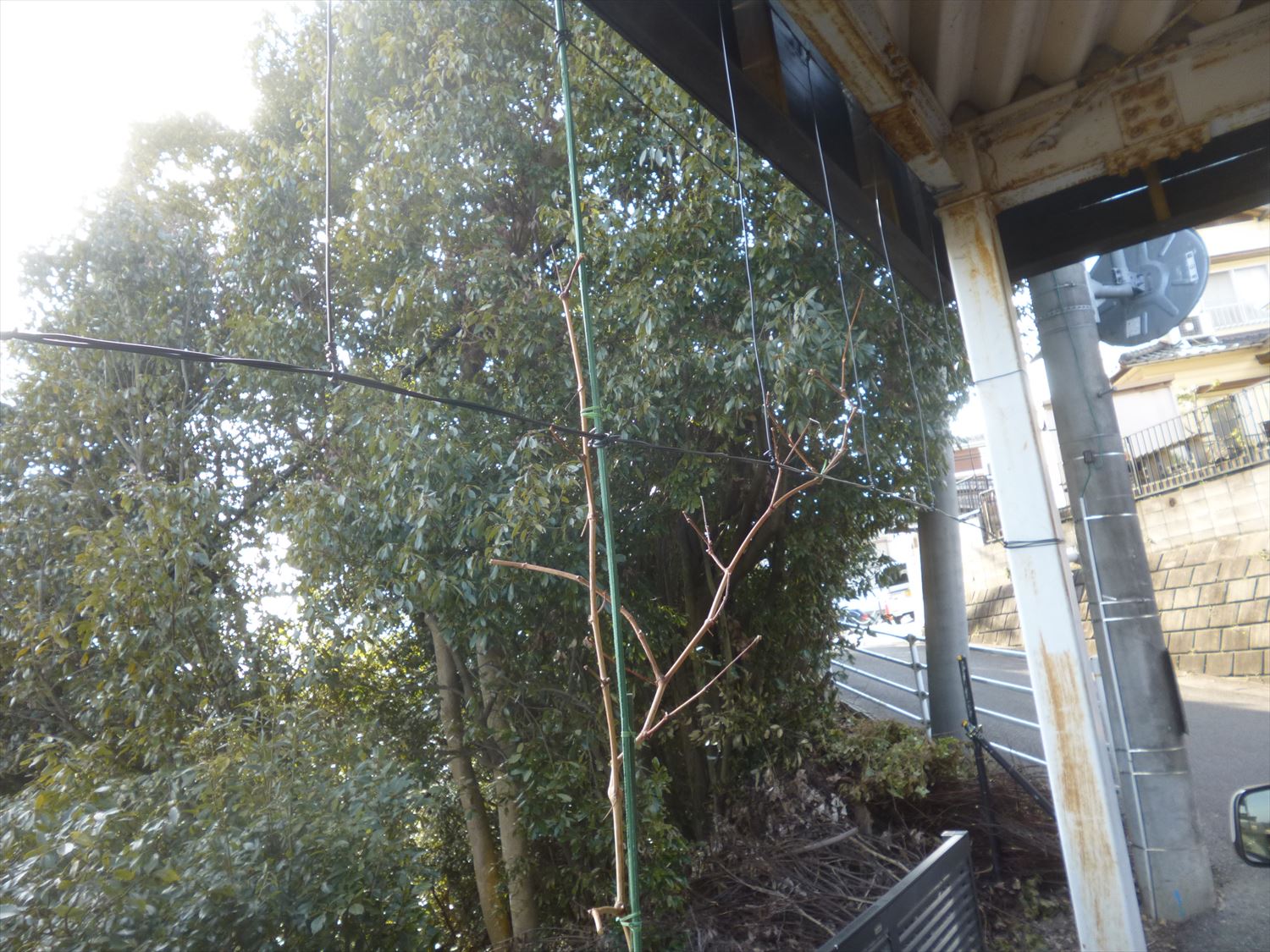 そして春の生育期は夏ほど太陽の高度が高くないので、縦にツルを這わせても日光は十分当たるはず。