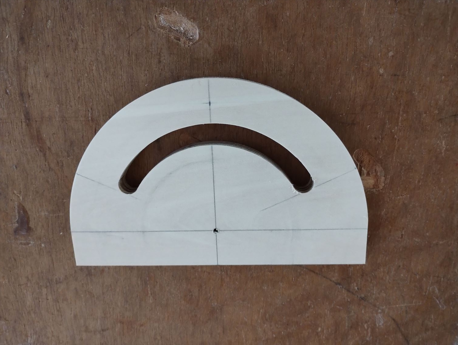 同じくポプラLVL材を用い、丸鋸の位置決めと押さえ付けをしています。