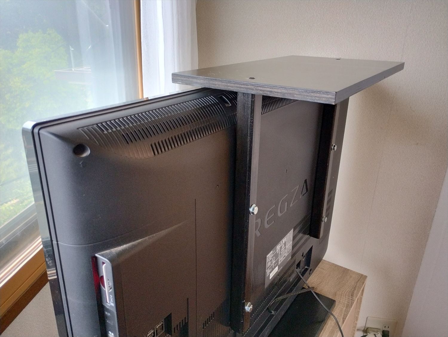 次にBDレコーダーをTVの上に設置するため、棒2本とBDレコーダーを乗せる台を製作し、