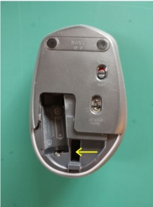 電池ボックスの蓋を開け、USBレシーバーを取り外すと中にネジが見えます。