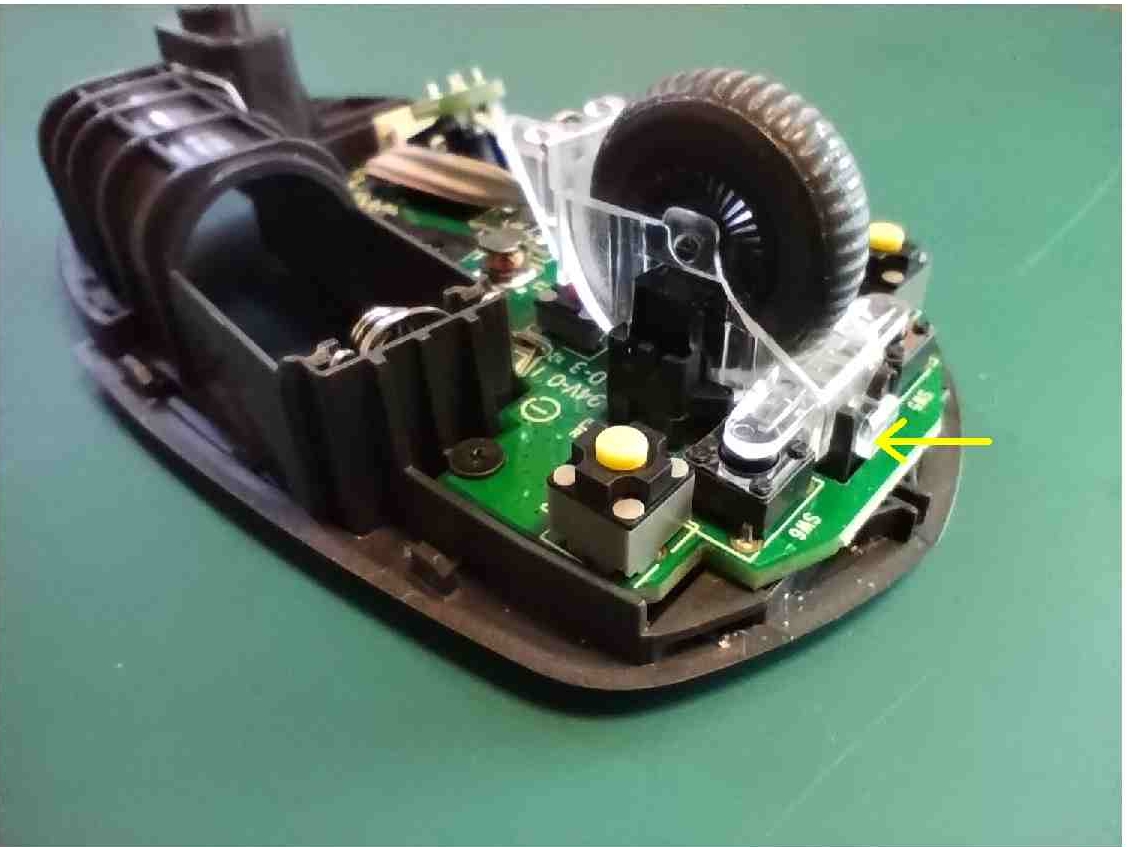 2個所のスイッチを取り外し、右クリックスイッチを付けると次のようになります。