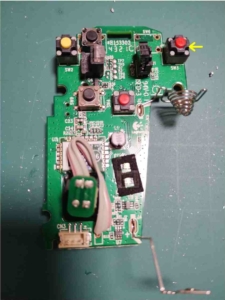 「進む・戻るボタン」と基盤がリード線で繋がっていて作業がやりにくいので、コネクタを外します。