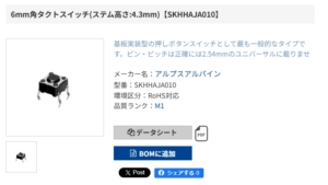 ホイールチルト用スイッチは静音でなくてもいいので、大きさが合うものを探し、次のスイッチを買いました。