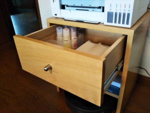 引き出しの中にはインクボトルや取扱説明書などを入れています。