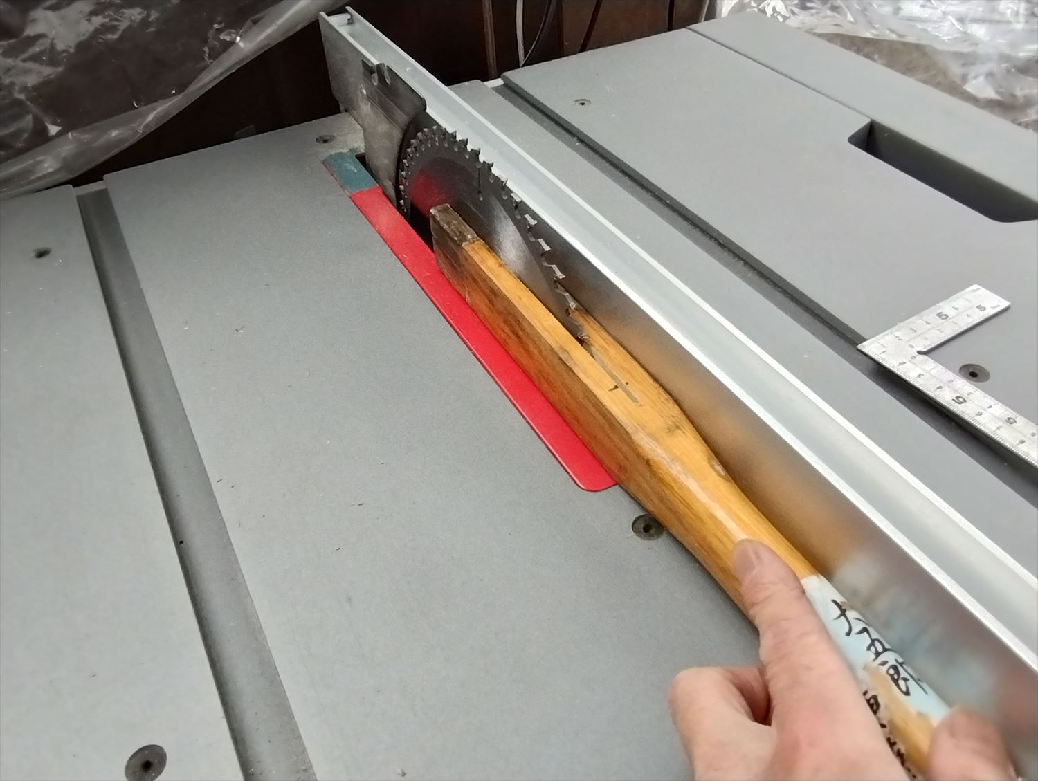 丸鋸で刃を付ける部分に切り込みを入れます。