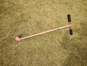 効果は素晴らしいのですが、柄の構造上振り下ろすのが難しい上、抜くときに芝を傷つけることがあったのです。