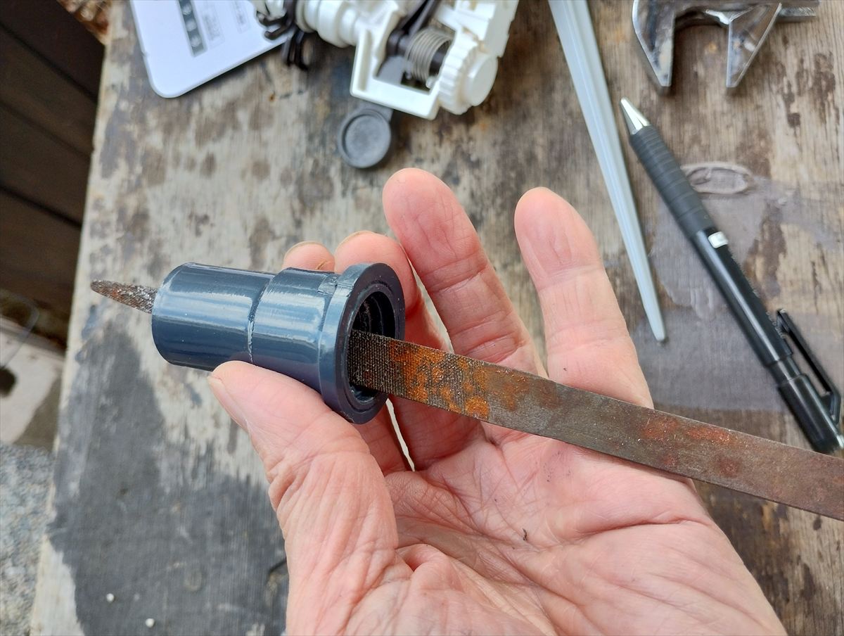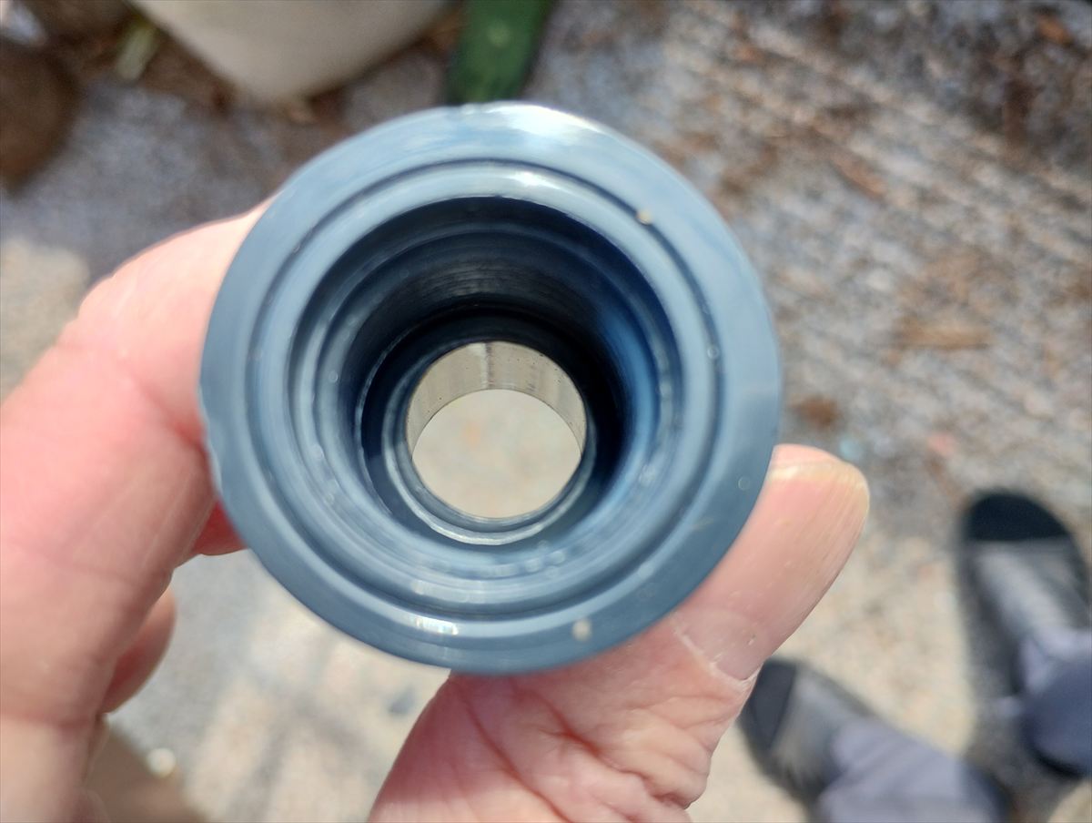 今回購入したインパクトスプリンクラーはソケットに繋ぐと回転が悪くなるので、ソケットの中のツバの部分を