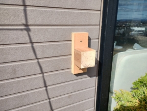 壁にありあわせの木材をネジで取り付け、