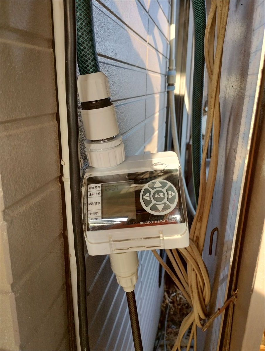 タイマーは散水中でも水がかからない場所に設置しました。
