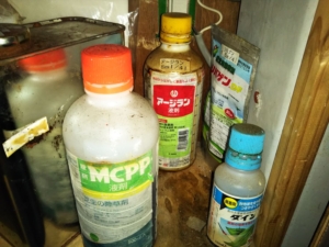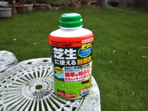 手で抜いてもキリがないので除草剤を使うのだけど、ちょっと前までは除草剤のシバゲン、MCPP、アージランをミックスして水に溶いて撒いていたからとても面倒。