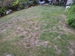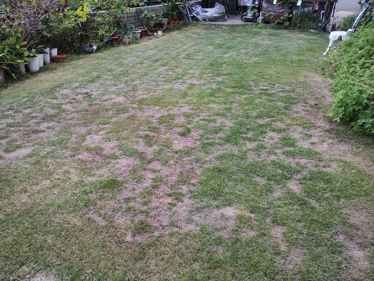 昨年の夏、猛暑でボロボロになった芝生