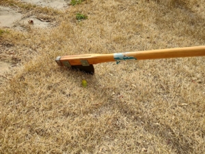 新芽が出始めるこの時期に、昨年作って効果抜群だったエアレーション用の道具を使用してエアレーションをしました。
