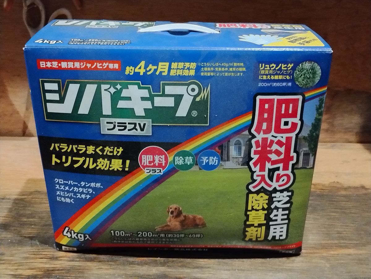 エアレーションの後は、肥料と除草を兼ねた「シバキープ」を撒きました。