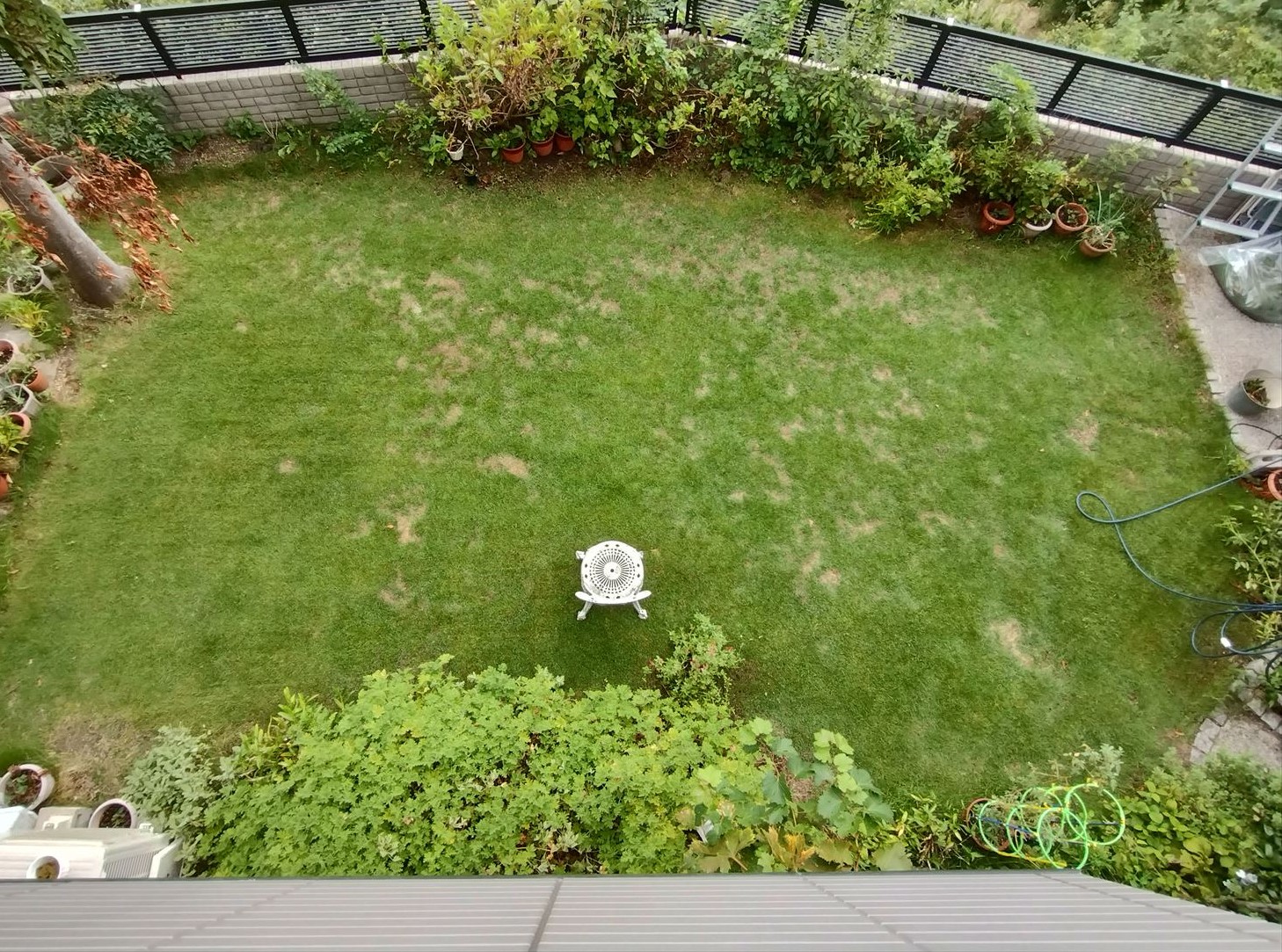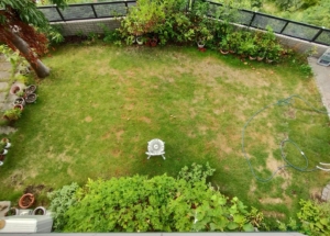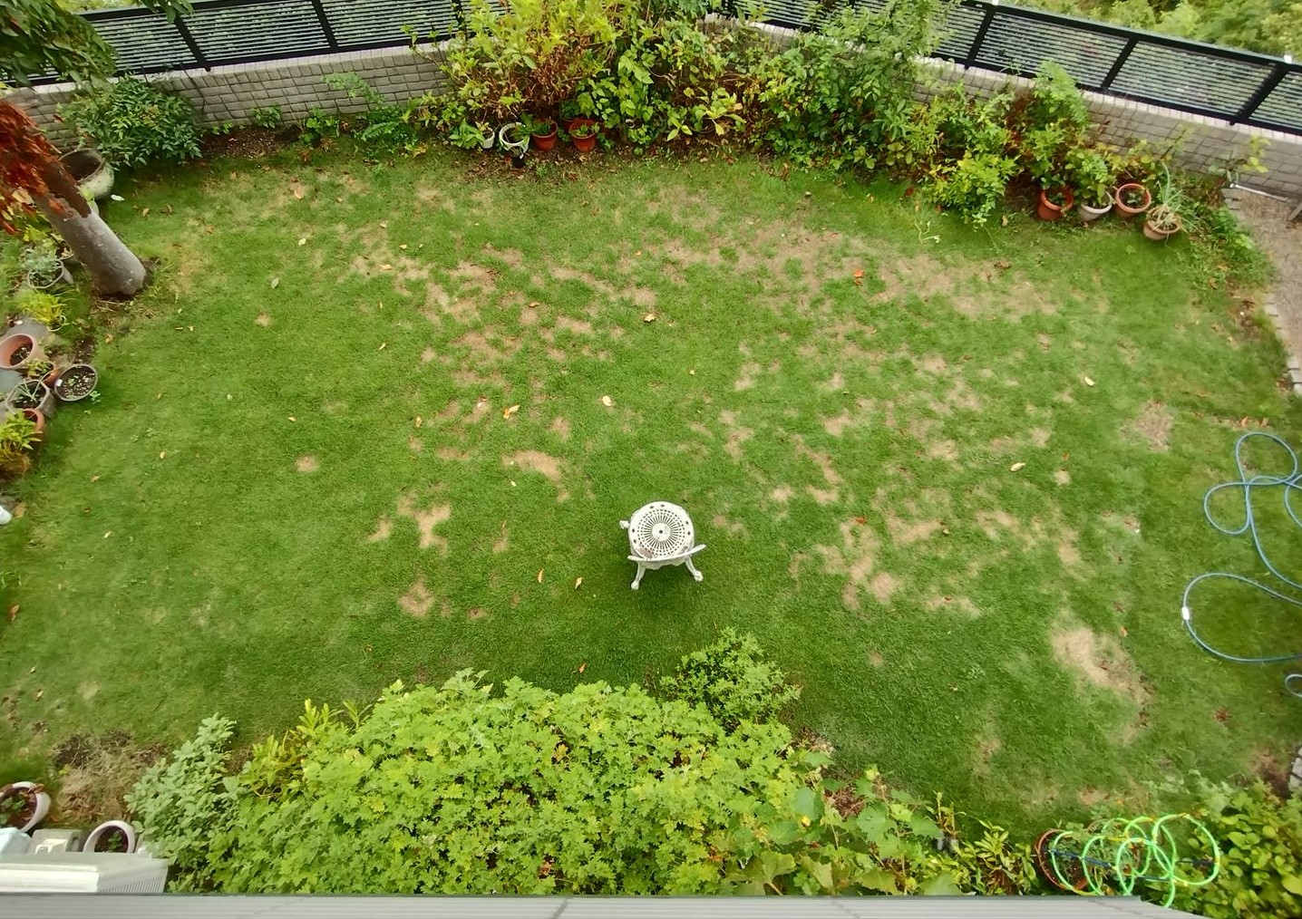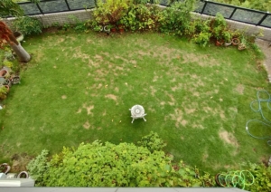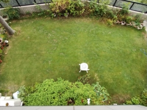 この間、生き残った芝が早く広がるように肥料を与え、朝晩の水やりを欠かしませんでした。