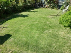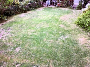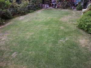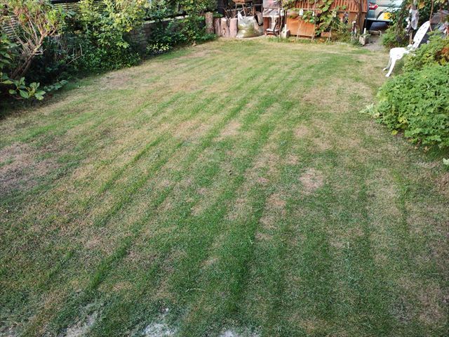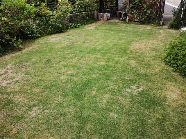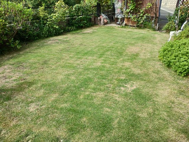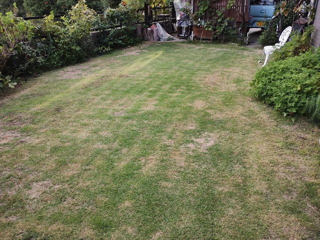 以前書いたように、猛暑から芝を守るために寒冷紗で覆うという馬鹿げたことをしてひどい状態になってしまいました。