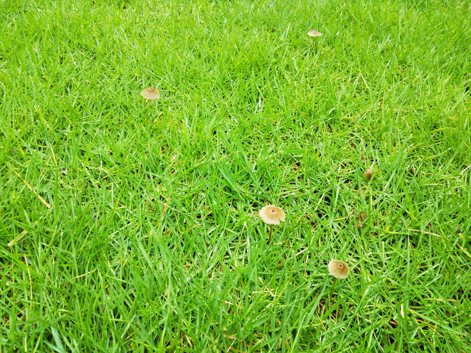 また、キノコが生えると芝の生育に悪影響があるという人もいますが、ちゃんと施肥・芝刈り・水やりをしていれば悪影響があるように思えません。