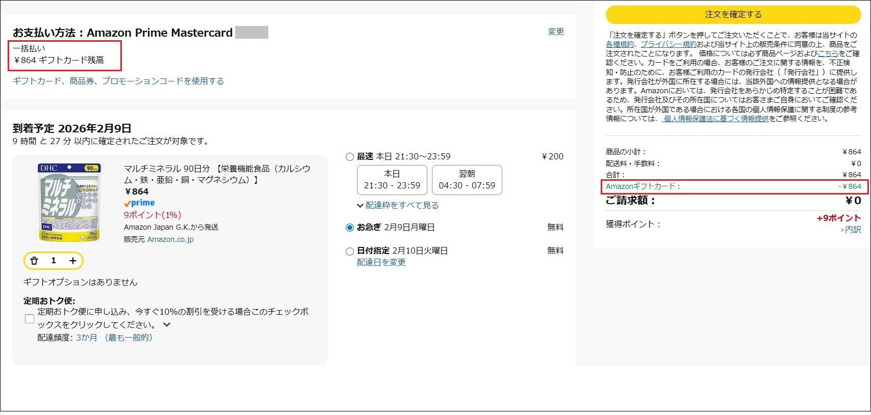 ということでめでたくギフトカードではなく、ポイントで¥864のマルチミネラルを購入することができました。