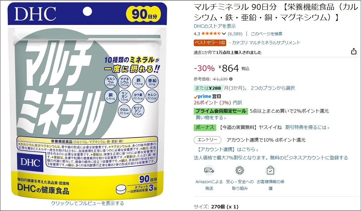 Amazonで「マルチミネラル」を買おうとしました。
