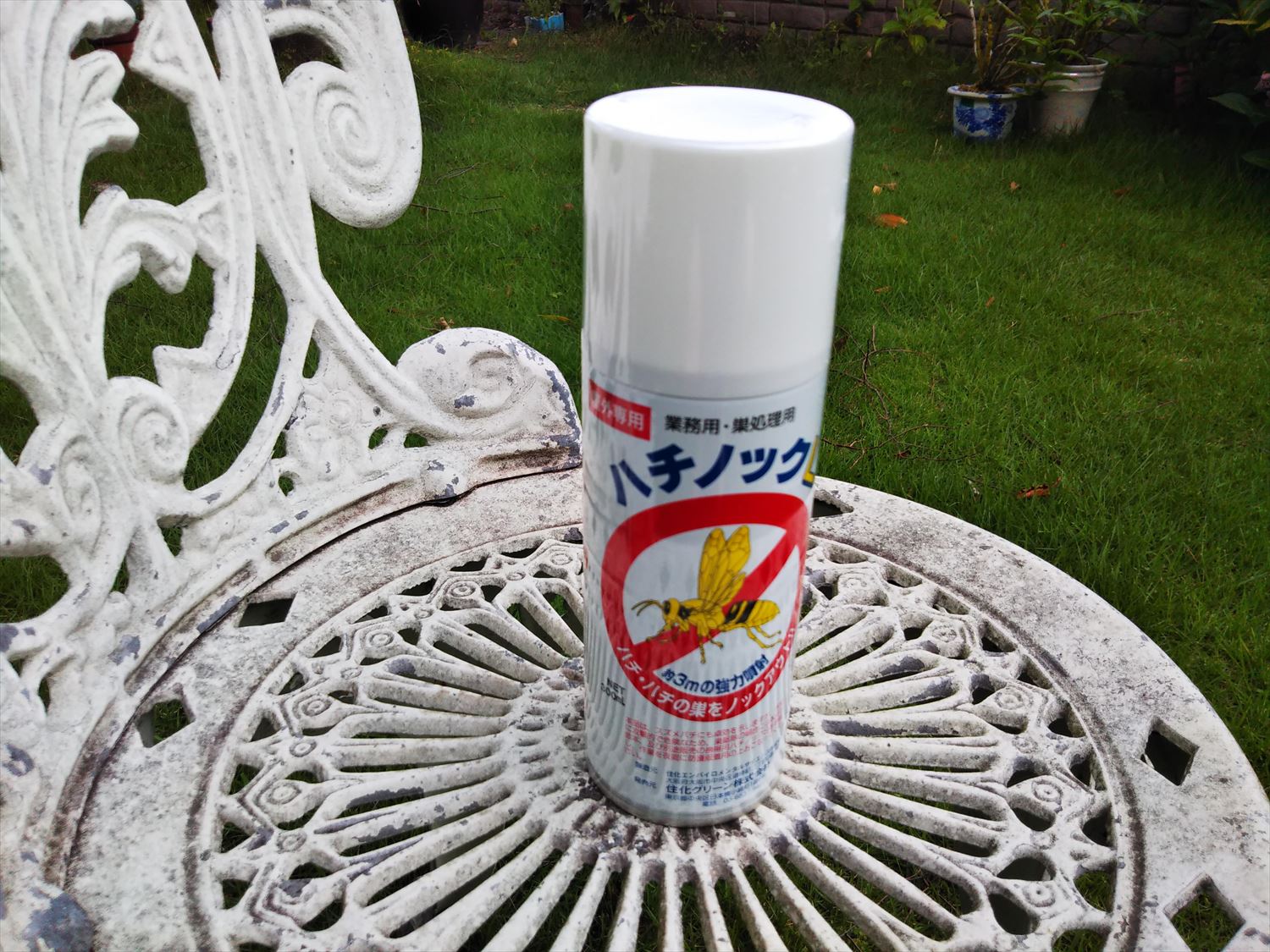 ハチの駆除剤としては「ハチノック」というスプレー式の駆除剤があって、飛翔中のスズメバチに薬液がかかったら瞬時に墜落します。
