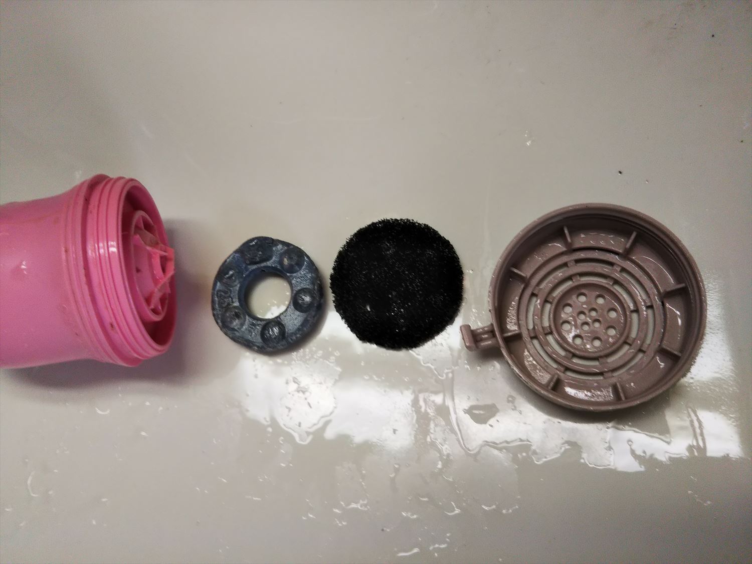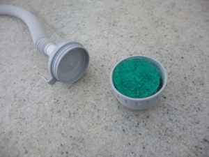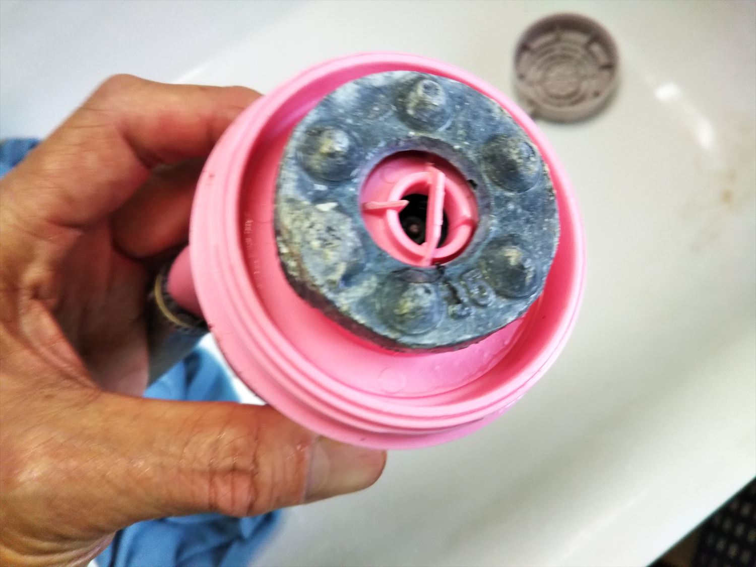 洗濯機のバスポンプの先のフィルターが内蔵されている蓋を外すと、こんなふうになっています。