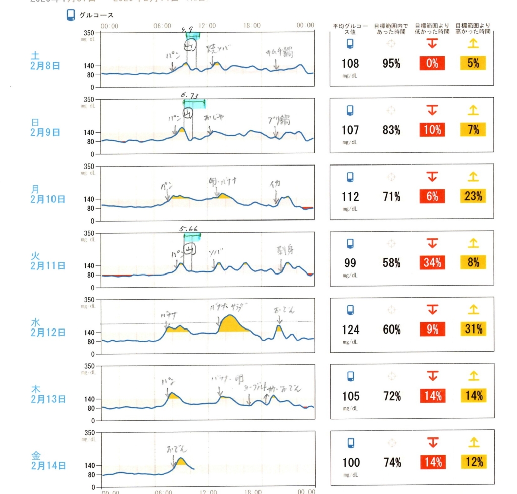 しかし2月3日、ラーメンを食べたらほとんど血糖値が上がっていない。
