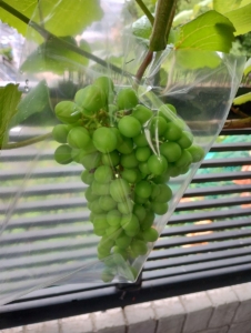 スチューベンだけでなく、残りのシャインマスカットとピオーネにも被せておきました。