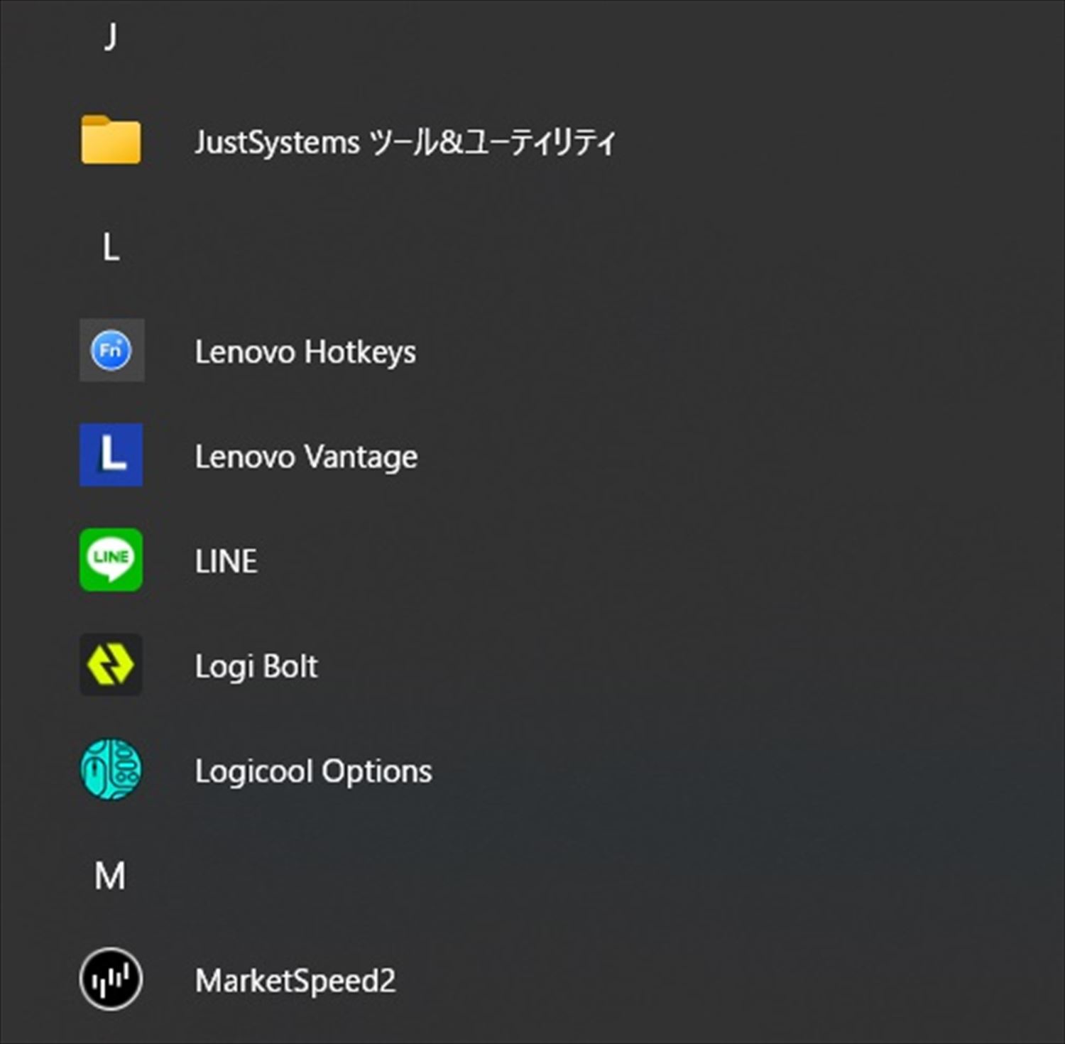 今までインストールしたlogicool関連のアプリはlogicooll boltとogicool options、そしてアプリ一覧にはありませんがUnifying Softwareというアプリもインストールしています。