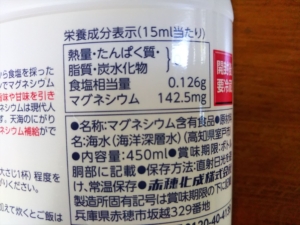 これワンプッシュで約5ccなのでマグネシウム量は50mgほどとなり、これだけで不足分の半分ほどを補える。