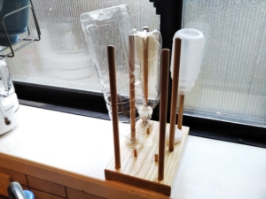 乾燥器といっても大げさなものではなく、要はペットボトルなどの容器を逆さまにして乾燥させる台です。