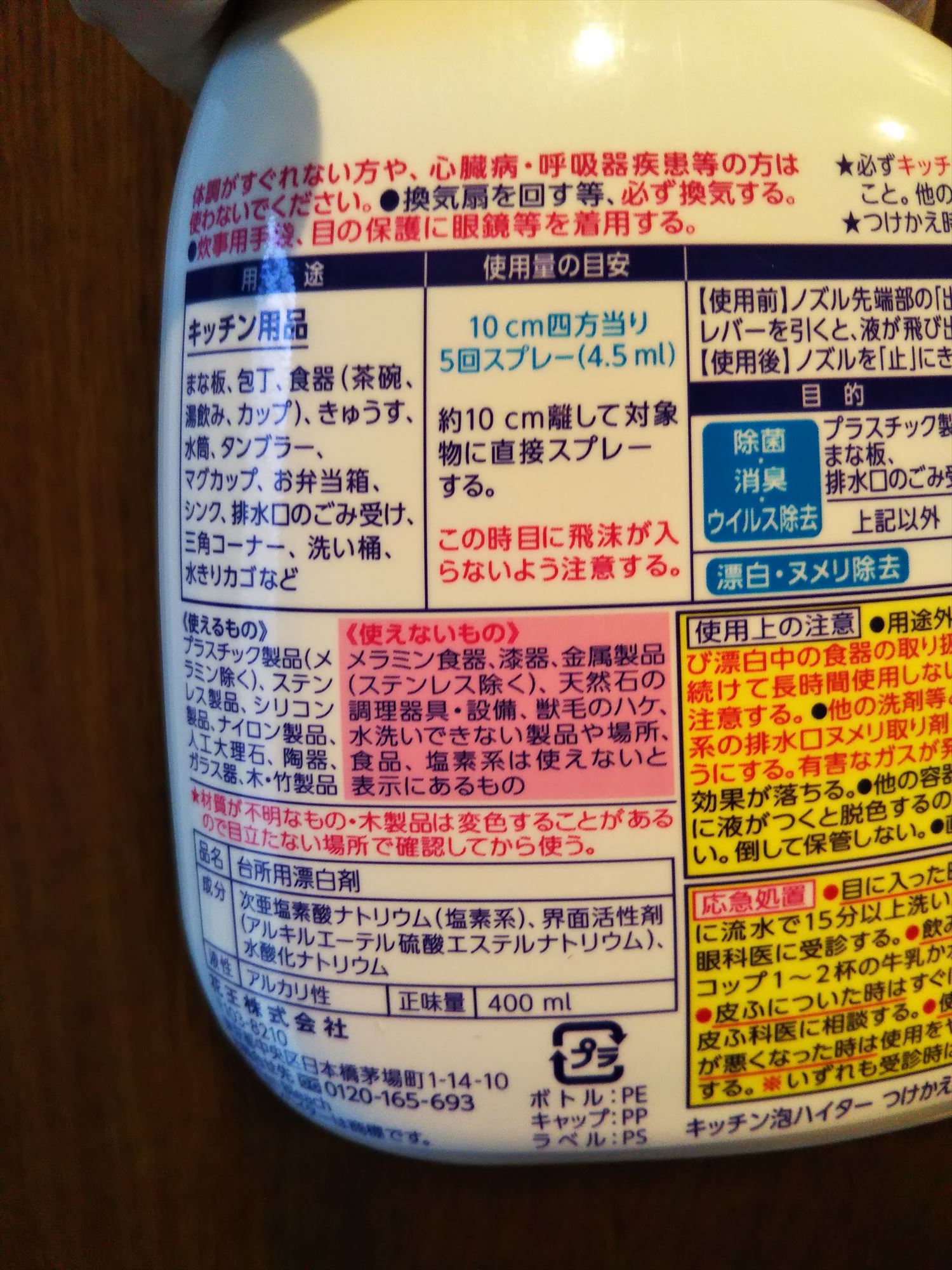 使ったのは花王のキッチン泡ハイター。