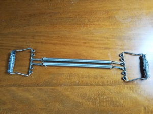 さてこのエキスパンダー、1本1本のバネが異常に強く、全部で6本入っていたのですが、4本にしてもビクともしない強さです。