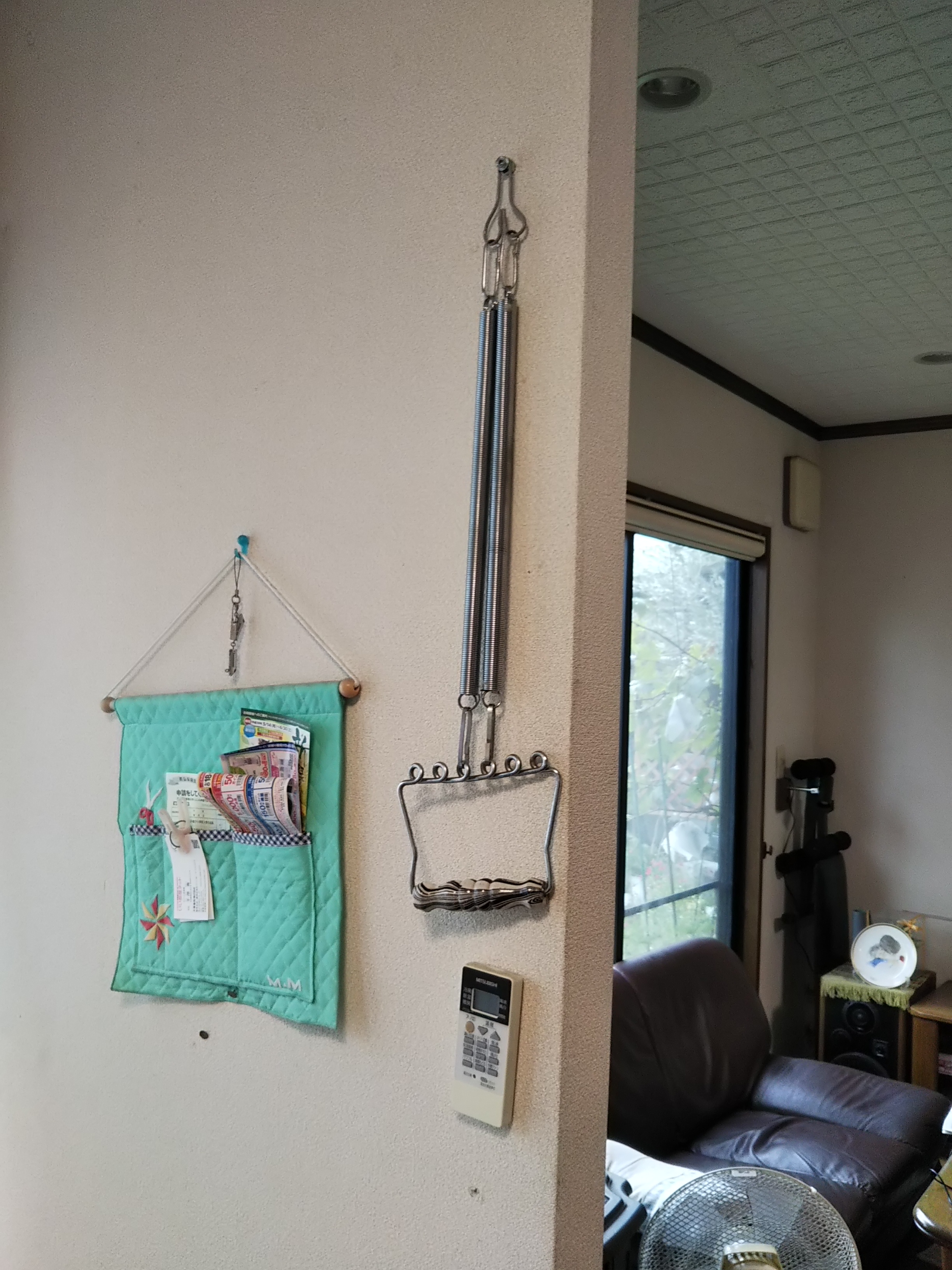 こうするといつも壁にぶら下がっているので、いつでもトレーニングできます。