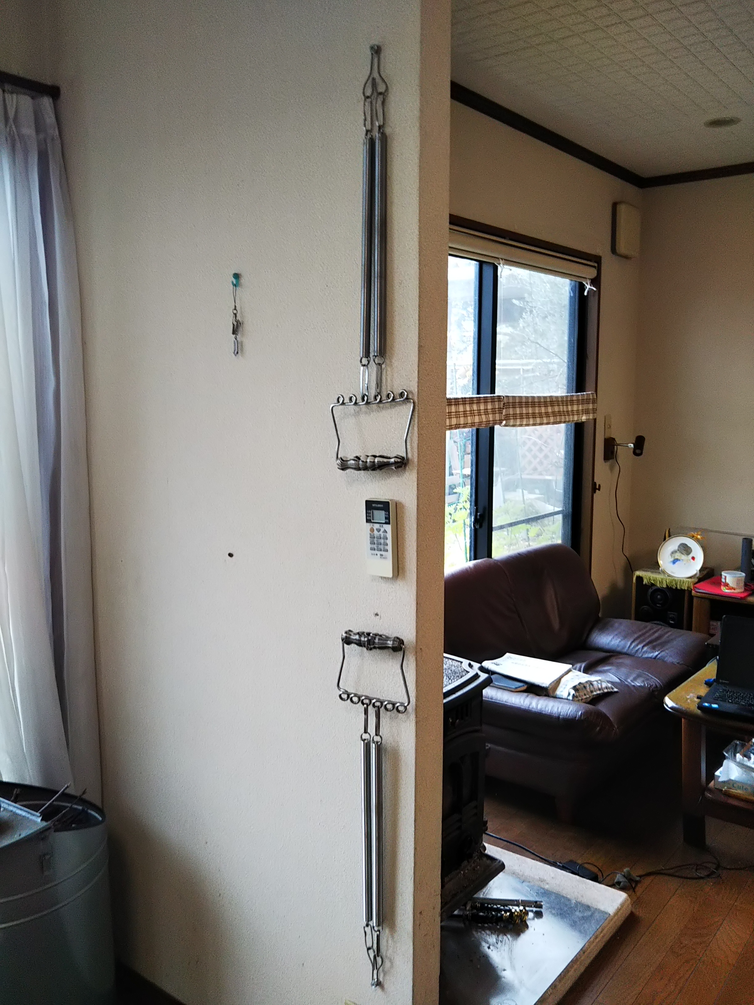 そこで思い立ったときにすぐにトレーニングできるように、エキスパンダーを壁に固定しました。