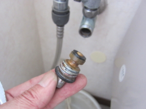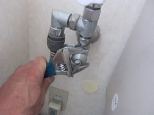 この時、混合水栓の場合は、必ず湯ではなく水が出るように開きます。そうしないといつまで経っても給湯器から湯が供給されるため、水が止まりません。