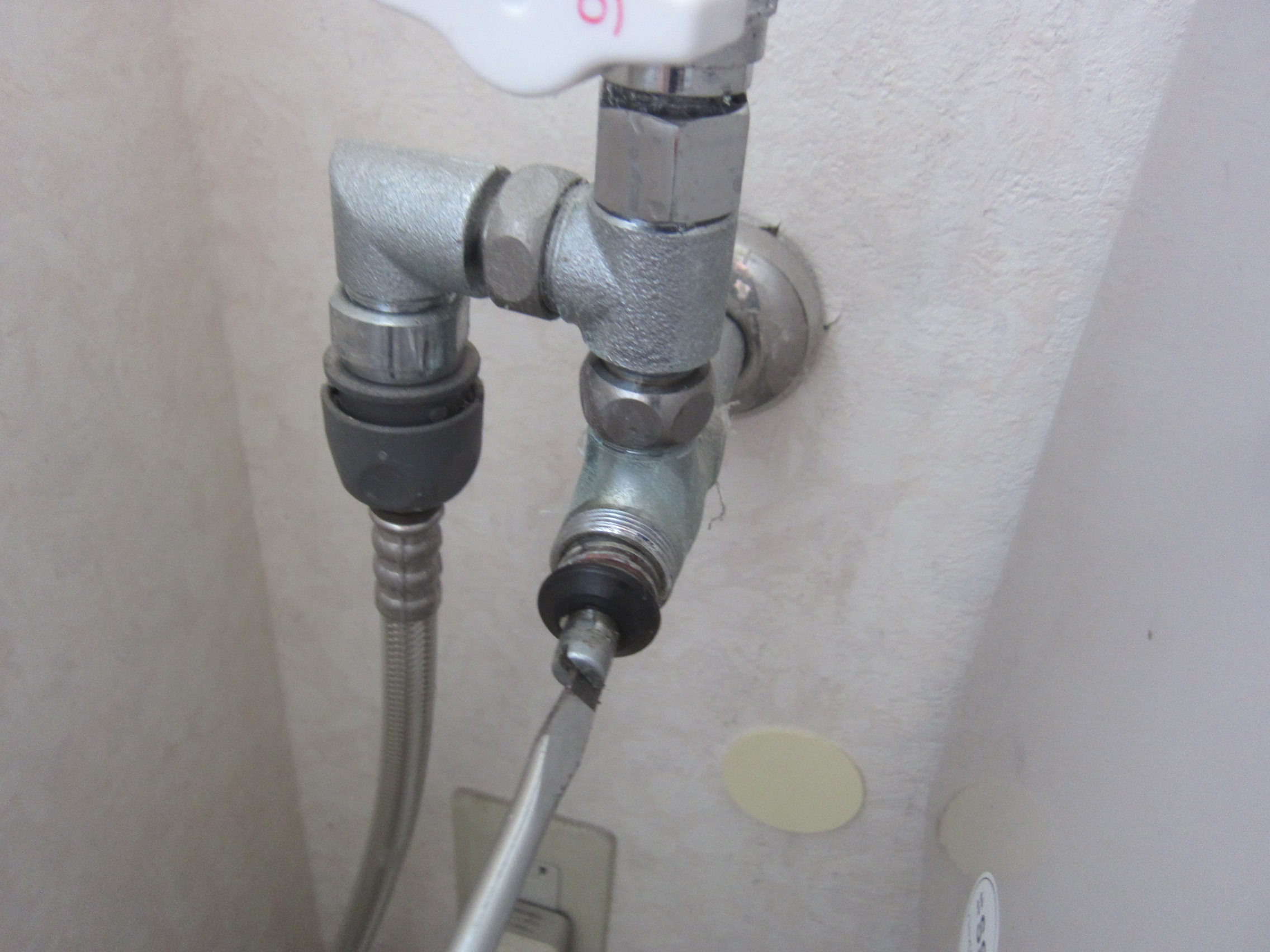これを止水栓にマイナスドライバーで奥までねじ込みます。