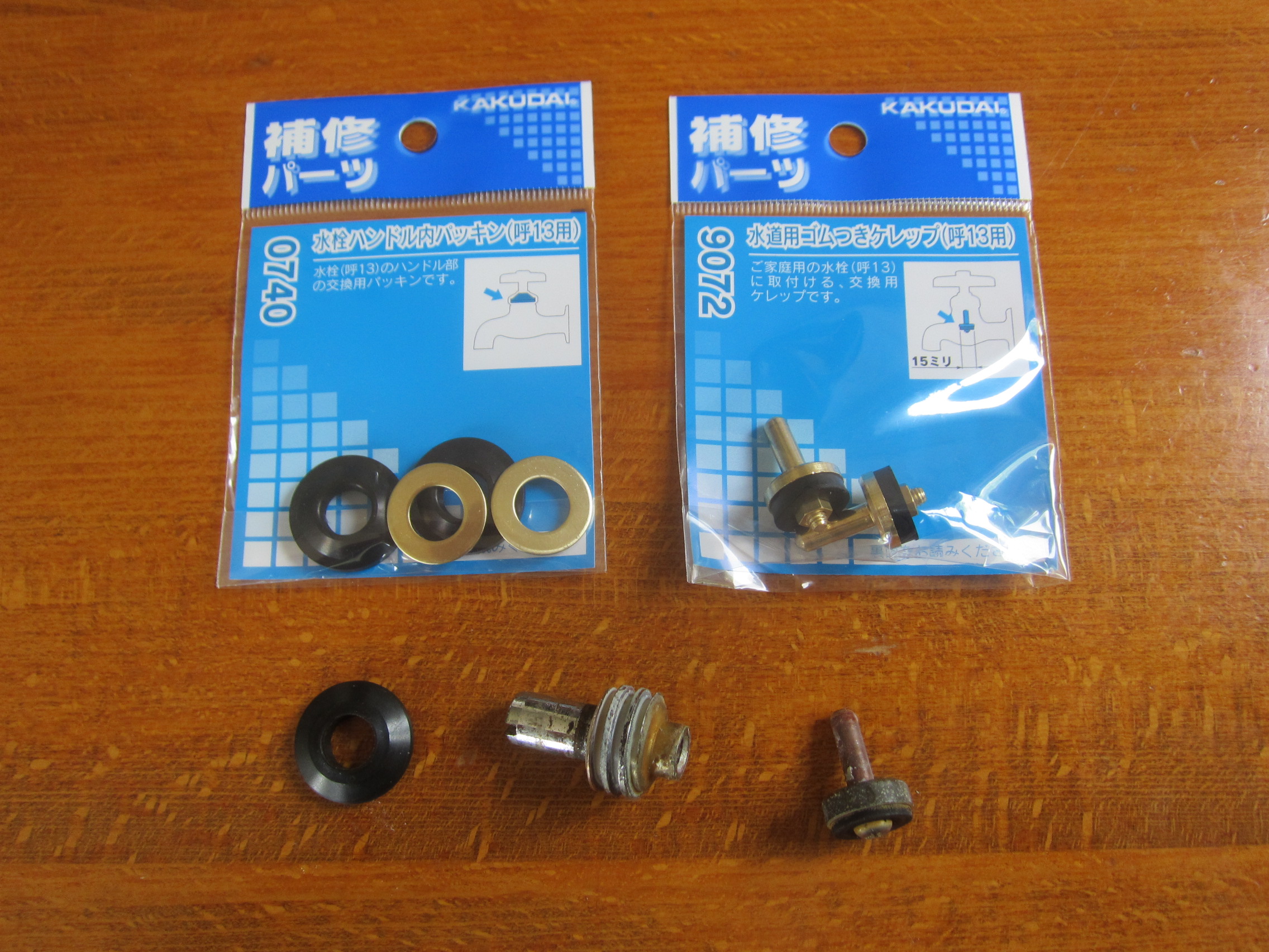 今回は水漏れの原因は三角パッキンの劣化なので、これだけを替えれば水漏れは止まるのですが、コマパッキンも消耗が激しいのでついでに交換しておきます。